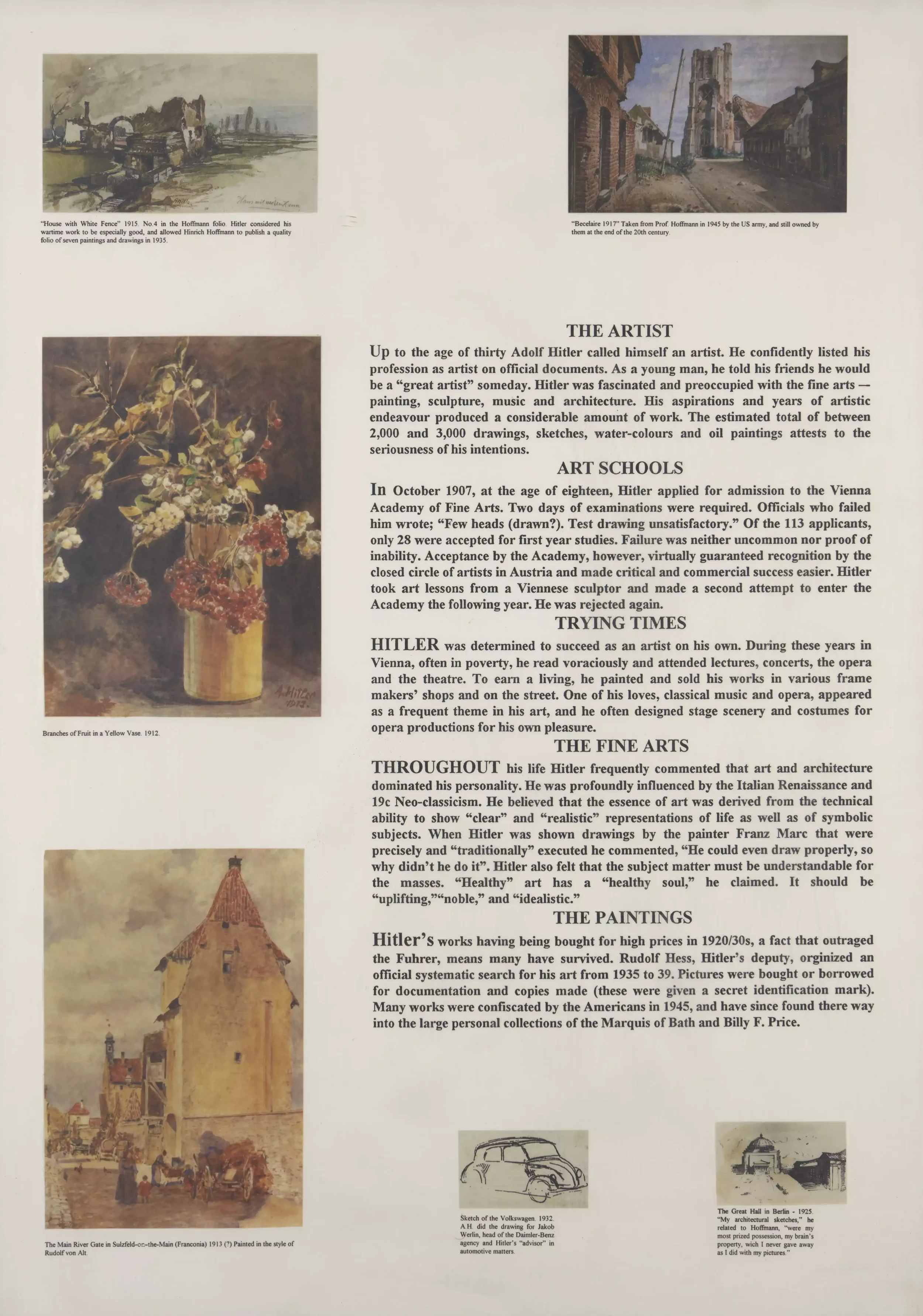 Johnny Spencer’s series of laminated prints, including Winston Churchill as a Painter (1995–96) and The Artist – Adolf Hitler (1995–96), extend this critical approach to the production of knowledge. Spencer’s works parody the forms of academic research — classification, typology, and authority — to expose how culture constructs its categories. Spencer’s “research” into artists, politicians, or social groups uses data and imagery to mimic objective study, while revealing its ideological underpinnings. In doing so, he collapses distinctions between scholarship and satire, seriousness and absurdity.